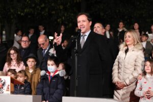 El alcalde de Toledo, Carlos Velázquez, ha deseado a todos los toledanos, en nombre de todo el Ayuntamiento, que esta Navidad "traiga la paz y la prosperidad que queremos para el año próximo". Así lo ha expresado en el encendido que ha realizado con la ayuda de niños y niñas de la Asociación AFANION y donde ha actuado el coro ‘Voces Blancas’ de la Escuela Municipal de Música ‘Diego Ortiz’.